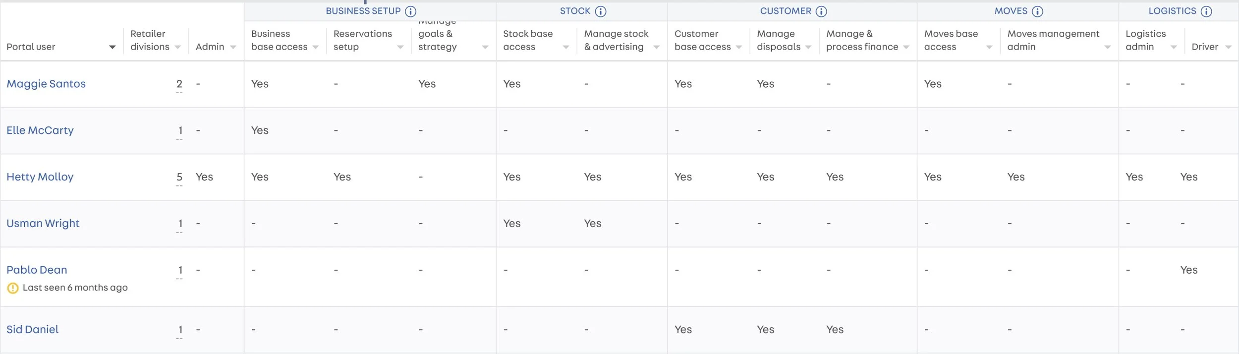 Only Admin users can add new users, update existing user permissions, or grant Admin access to others within the team. (A retailer can have multiple Admin users.)