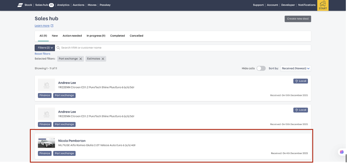 2. Add any new details: If the customer has not attached part exchange or finance options, these can be added directly to the lead in Portal following a discussion (add option is available).